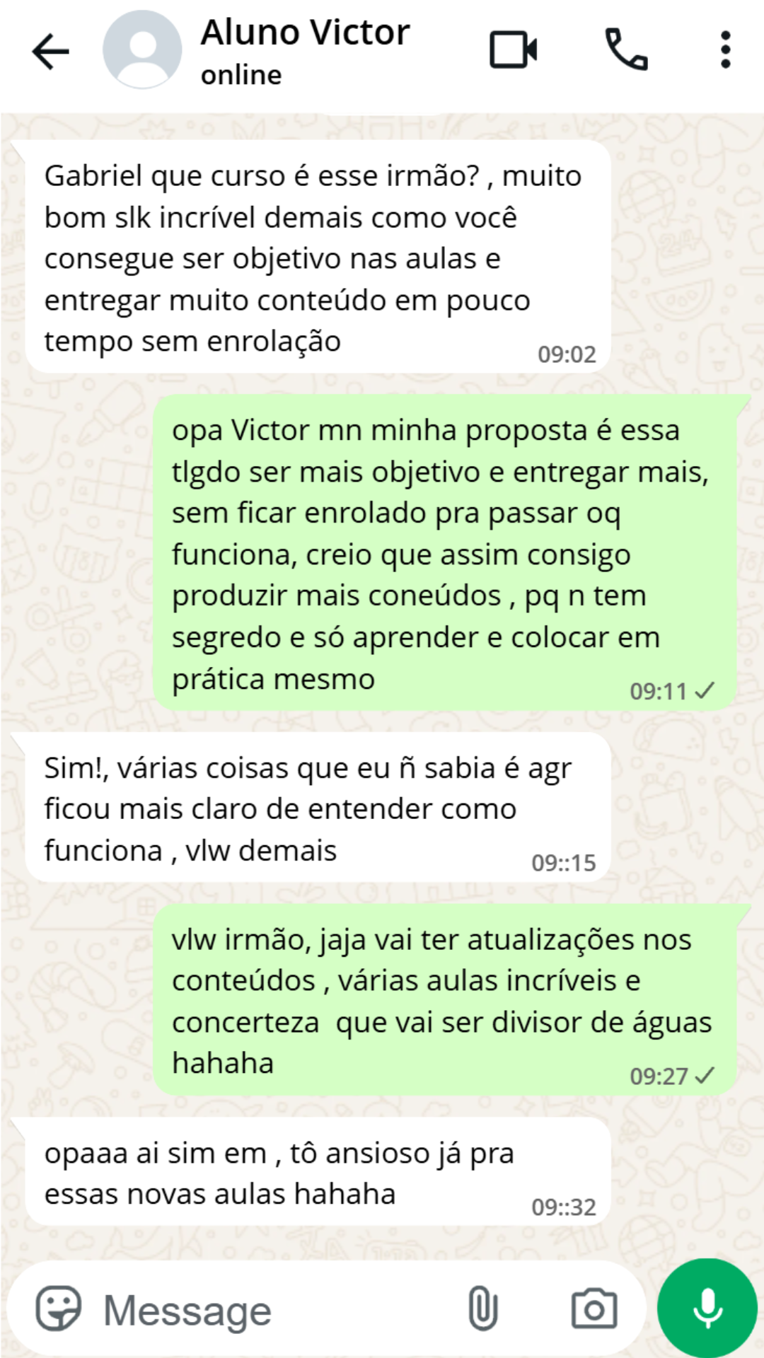 A velha desculpa de sempre SEM TEMPO, mais uma coisa eu te falo se você se dedicar e aplicar tudo que ensinar e impossível não ter resultados